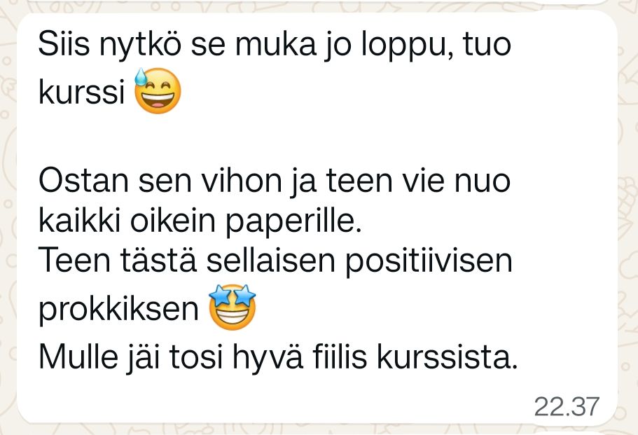 Pidetään homma hallinnassa, mutta joustavasti JA OMALLA TAHDILLASI ETEENPÄIN!